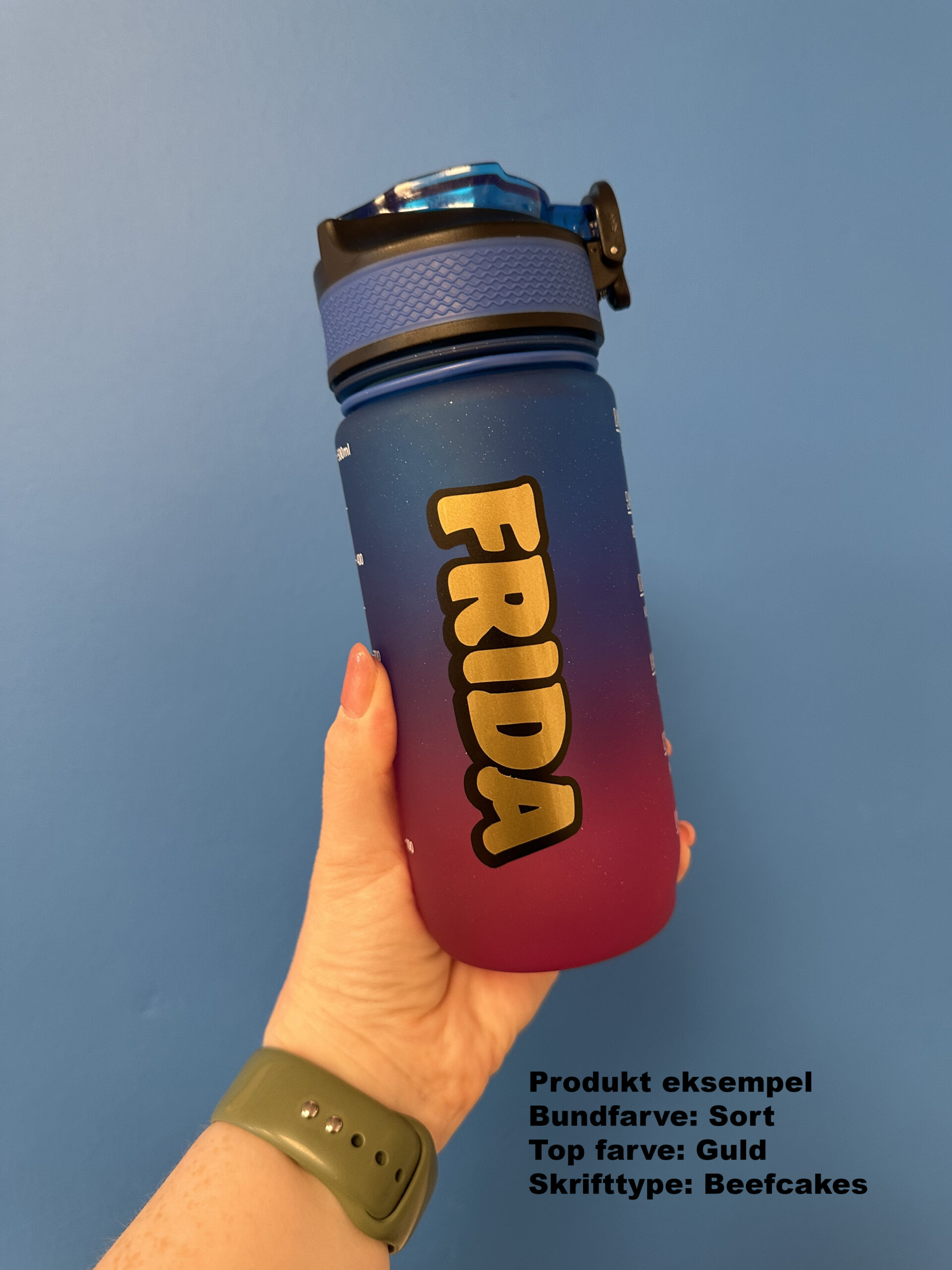 Ønsker du navn på skal du som minimum vælge en top farve (så er det kun 1 lag), ønsker du effekten med to lag, skal du udfylde begge dele