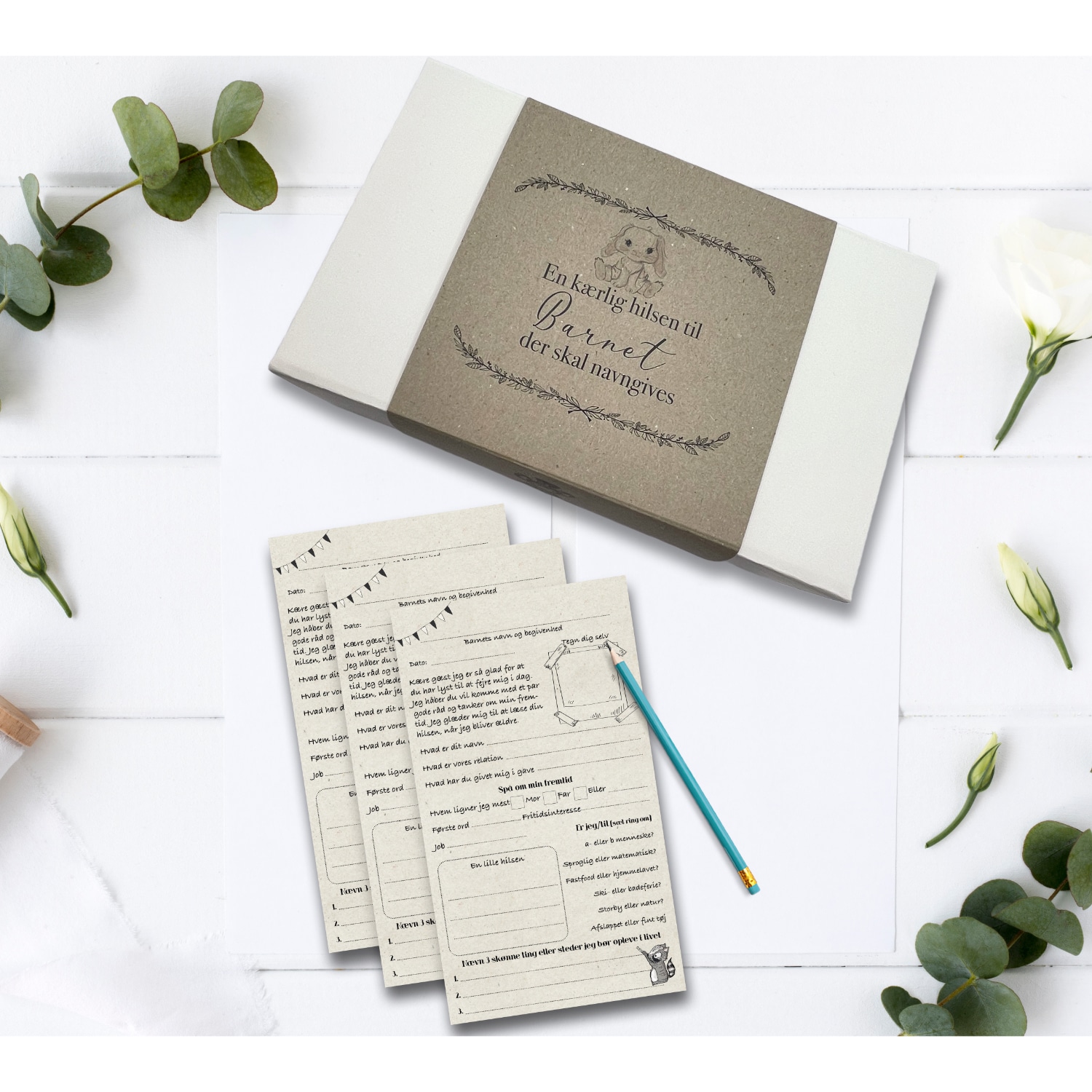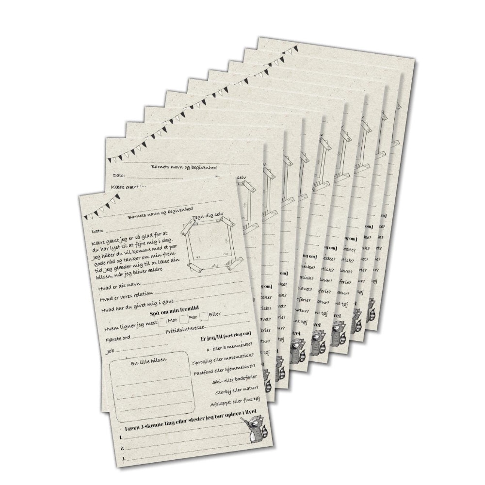 En super flot æske der indeholder 50 kort som gæsterne kan udfylde med forskellige spørgsmål