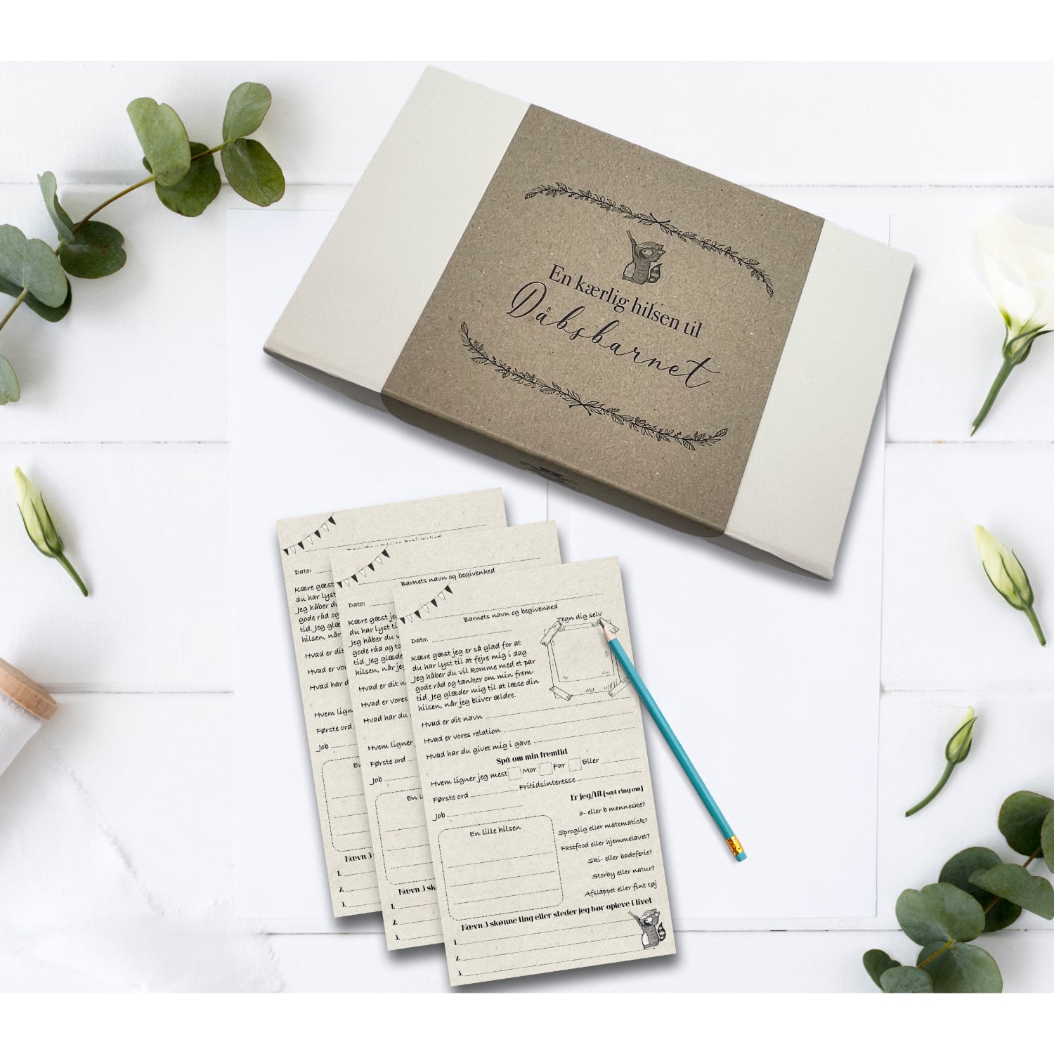 En super flot æske der indeholder 50 kort som gæsterne kan udfylde med forskellige spørgsmål