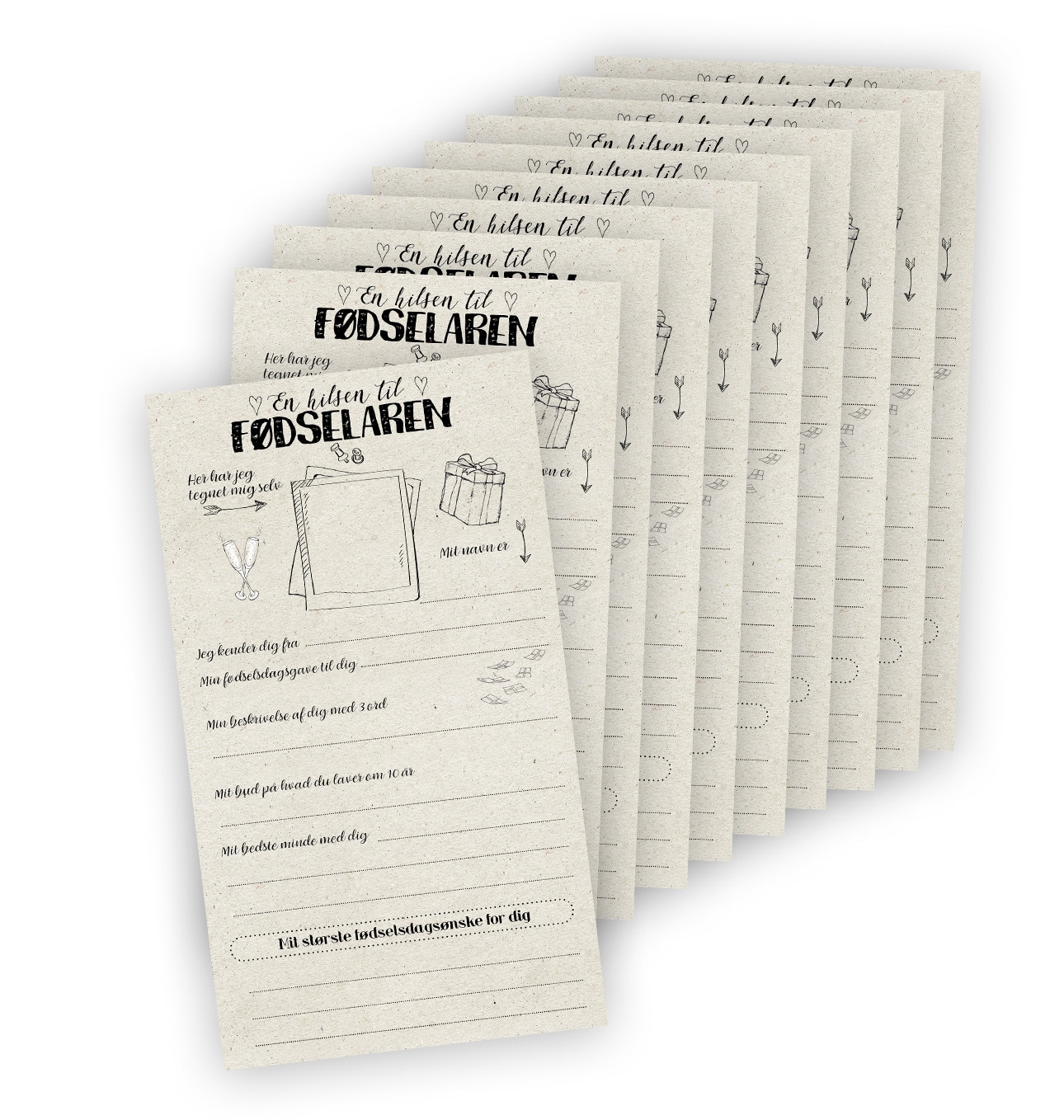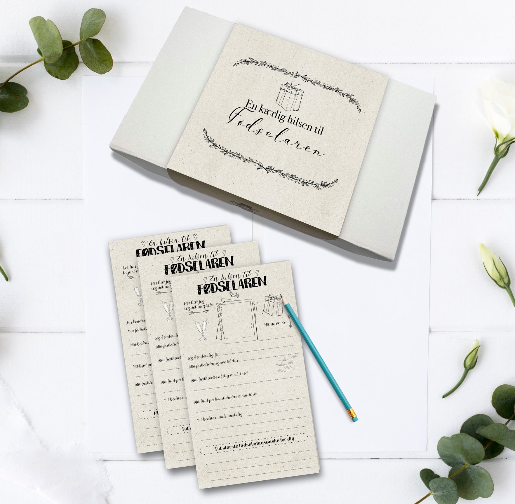 En super flot æske der indeholder 50 kort som gæsterne kan udfylde med forskellige spørgsmål