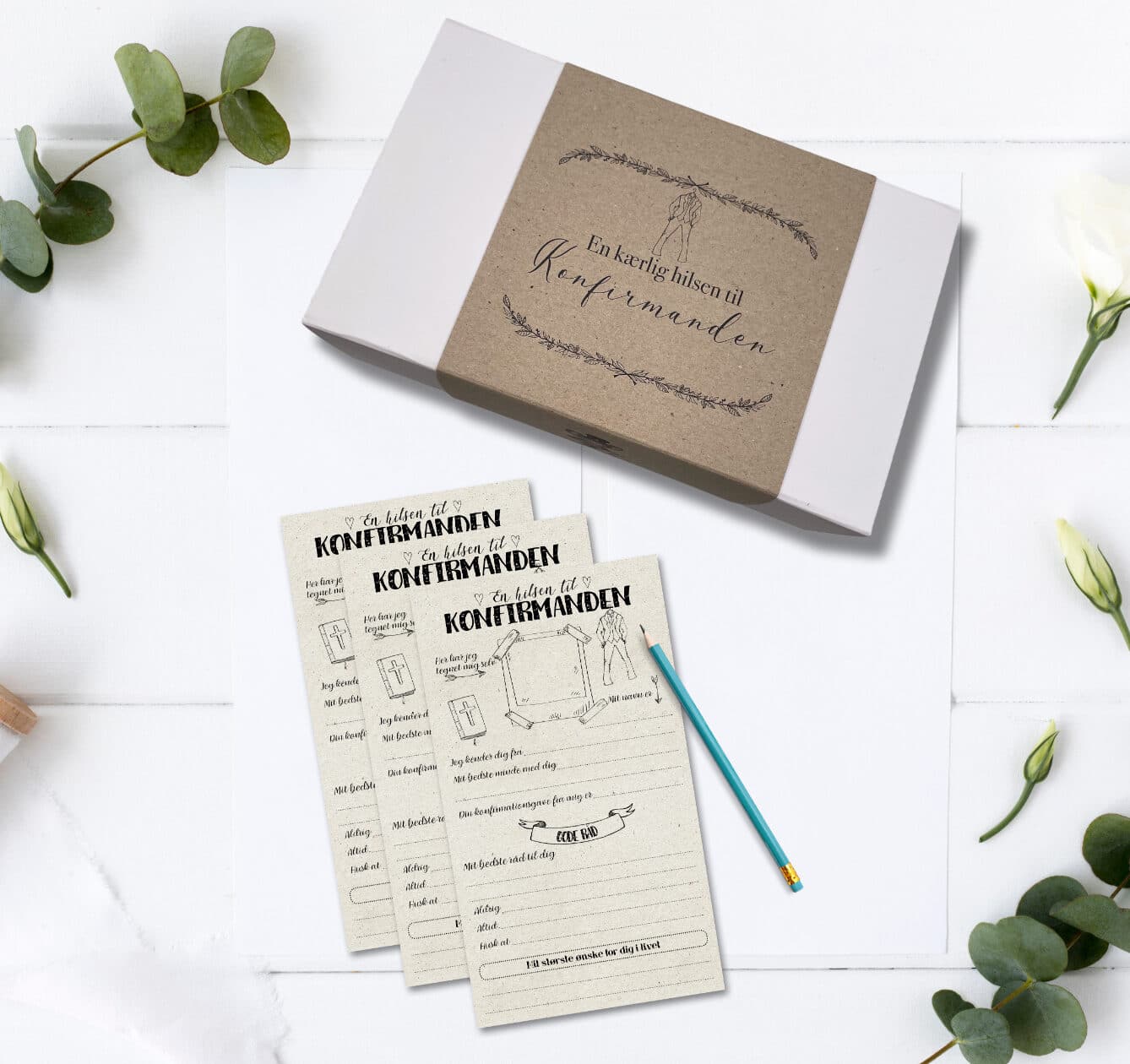 En super flot æske der indeholder 50 kort som gæsterne kan udfylde med forskellige spørgsmål