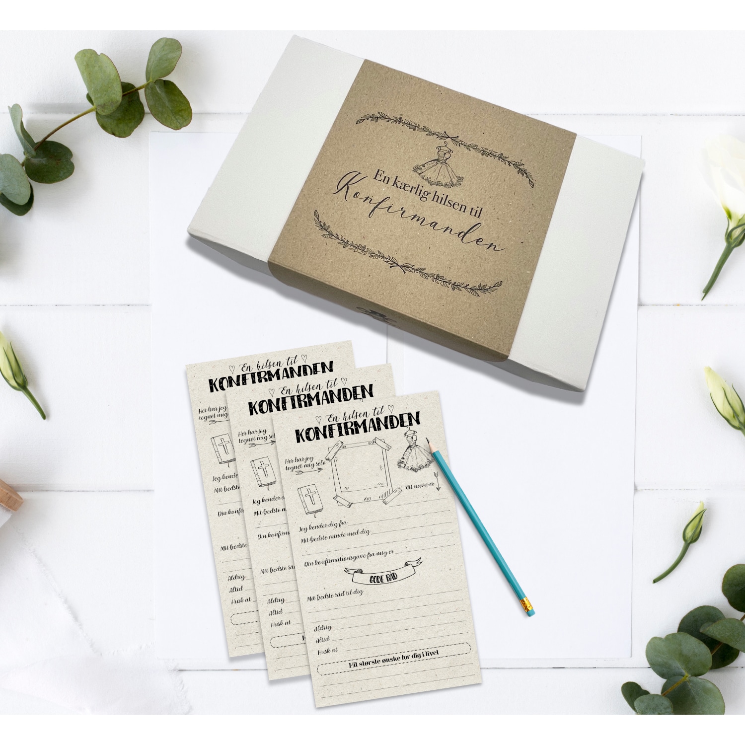 En super flot æske der indeholder 50 kort som gæsterne kan udfylde med forskellige spørgsmål
