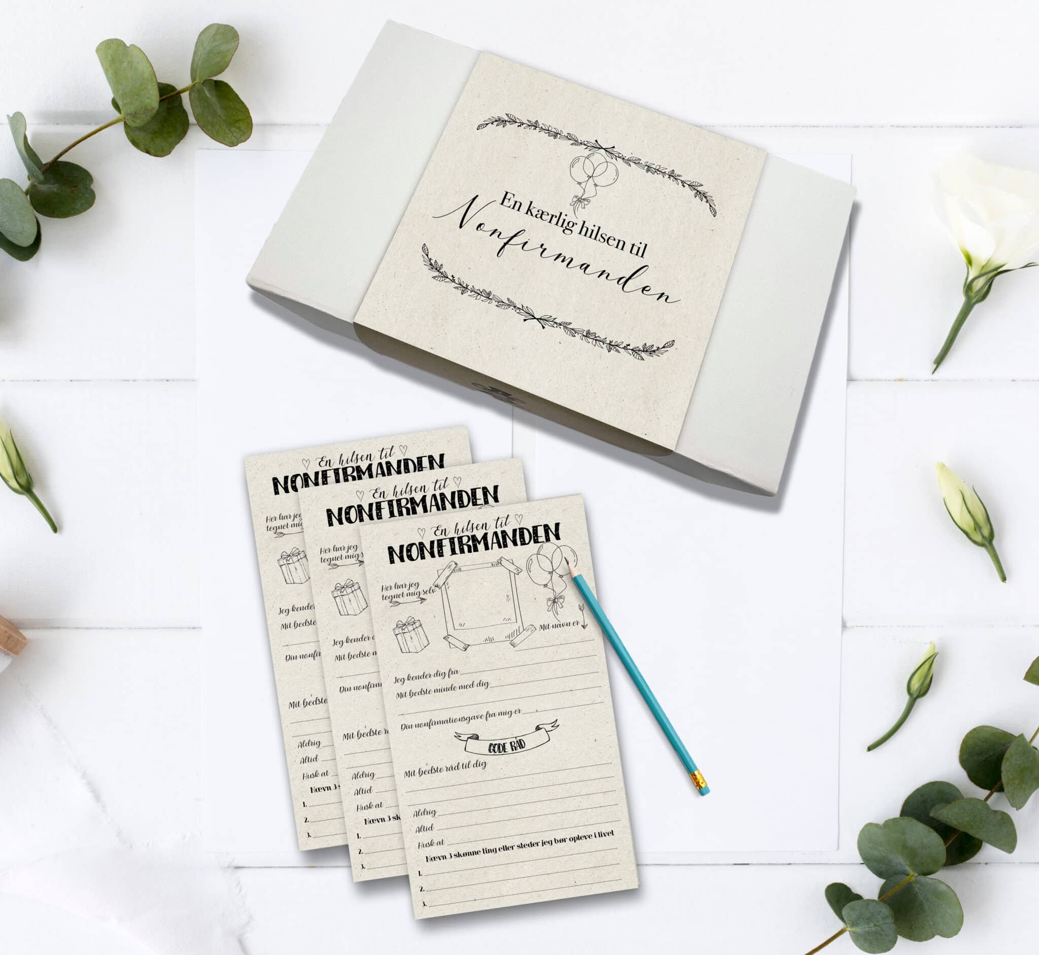 En super flot æske der indeholder 50 kort som gæsterne kan udfylde med forskellige spørgsmål