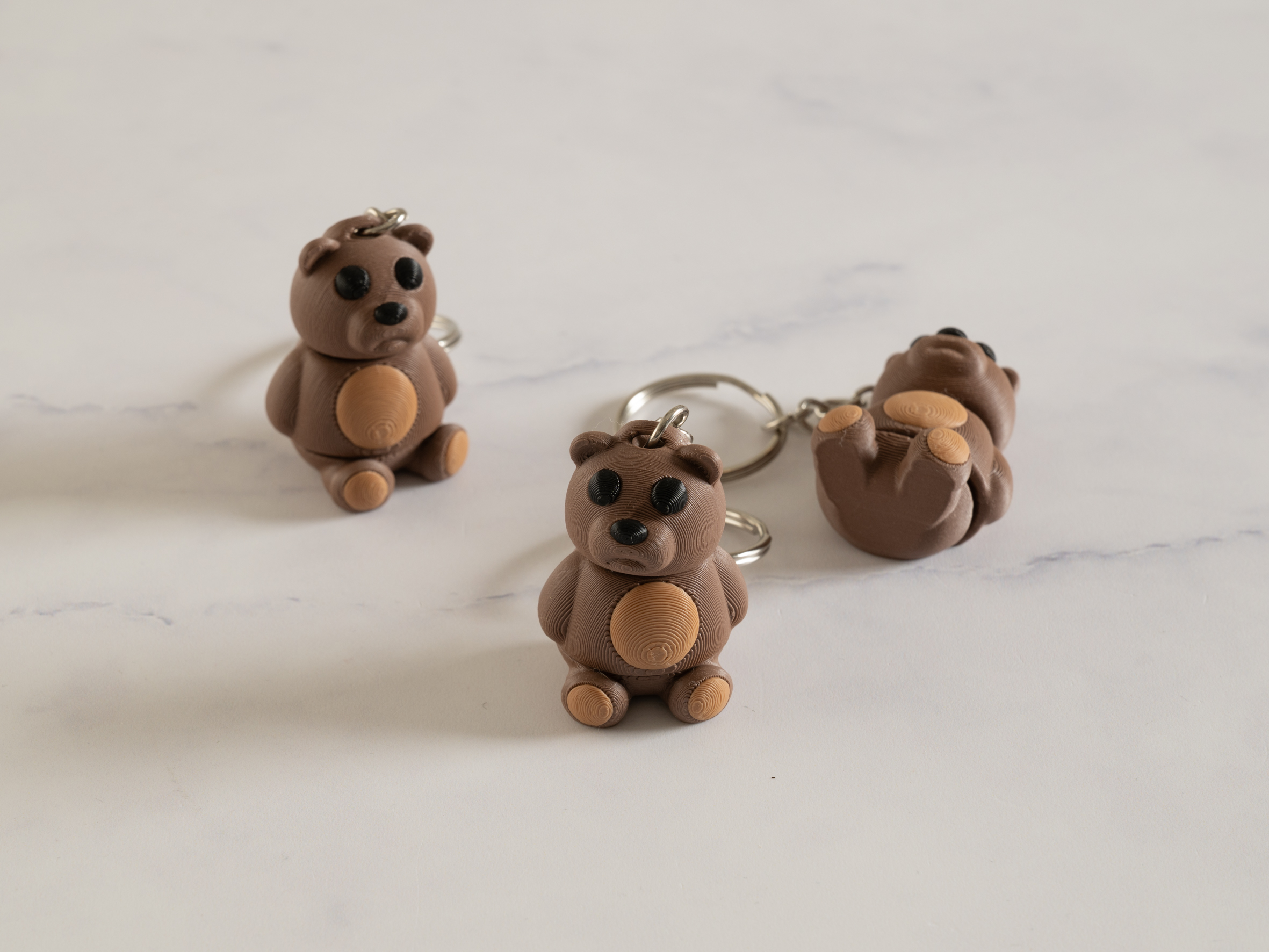 Bjørnen har bevægelige led og er sjove at have med rundt, og denne model har så nøglering, så den kan sidde på tasken, i dine nøgler, eller hvad du nu har lyst til