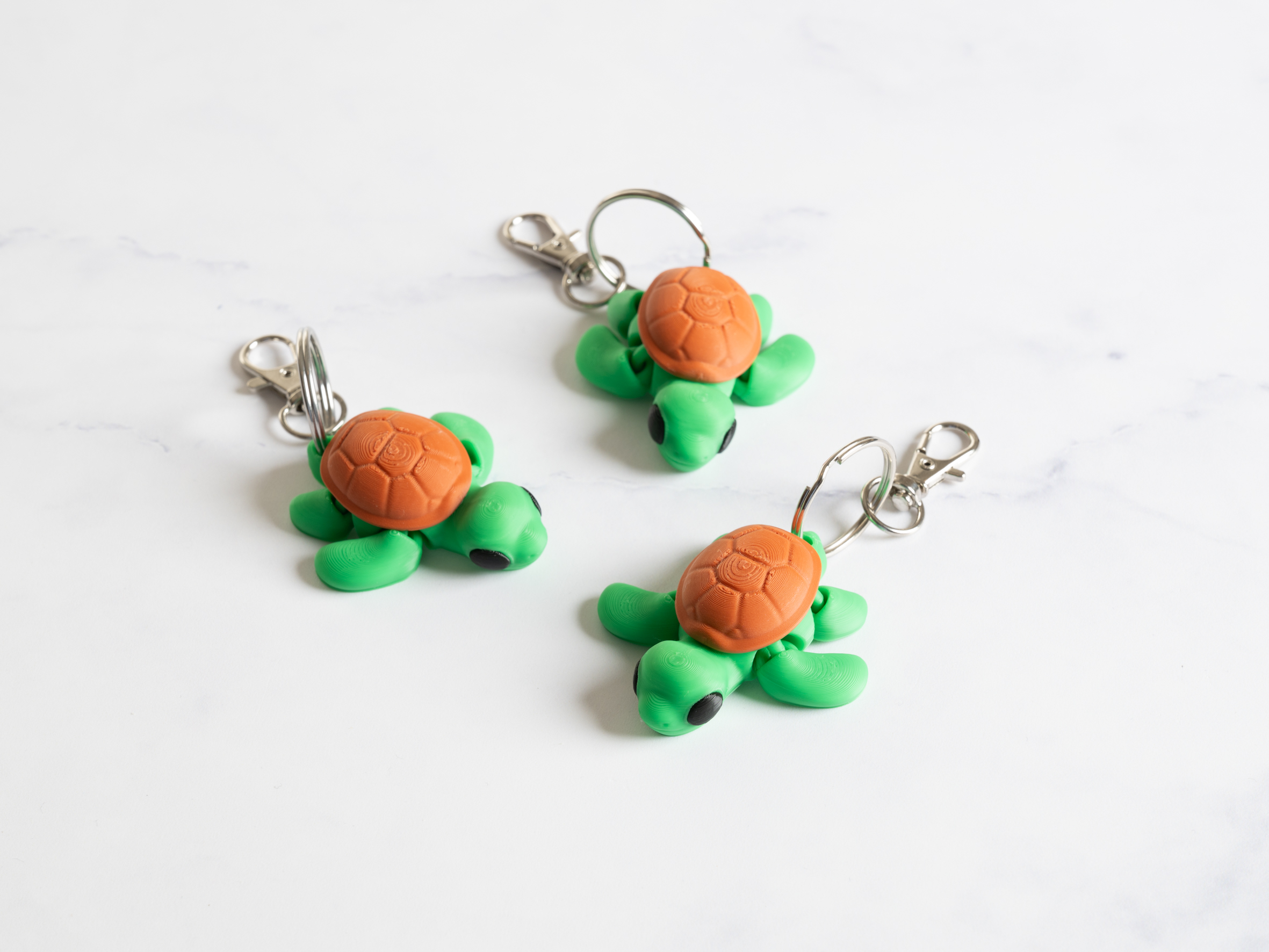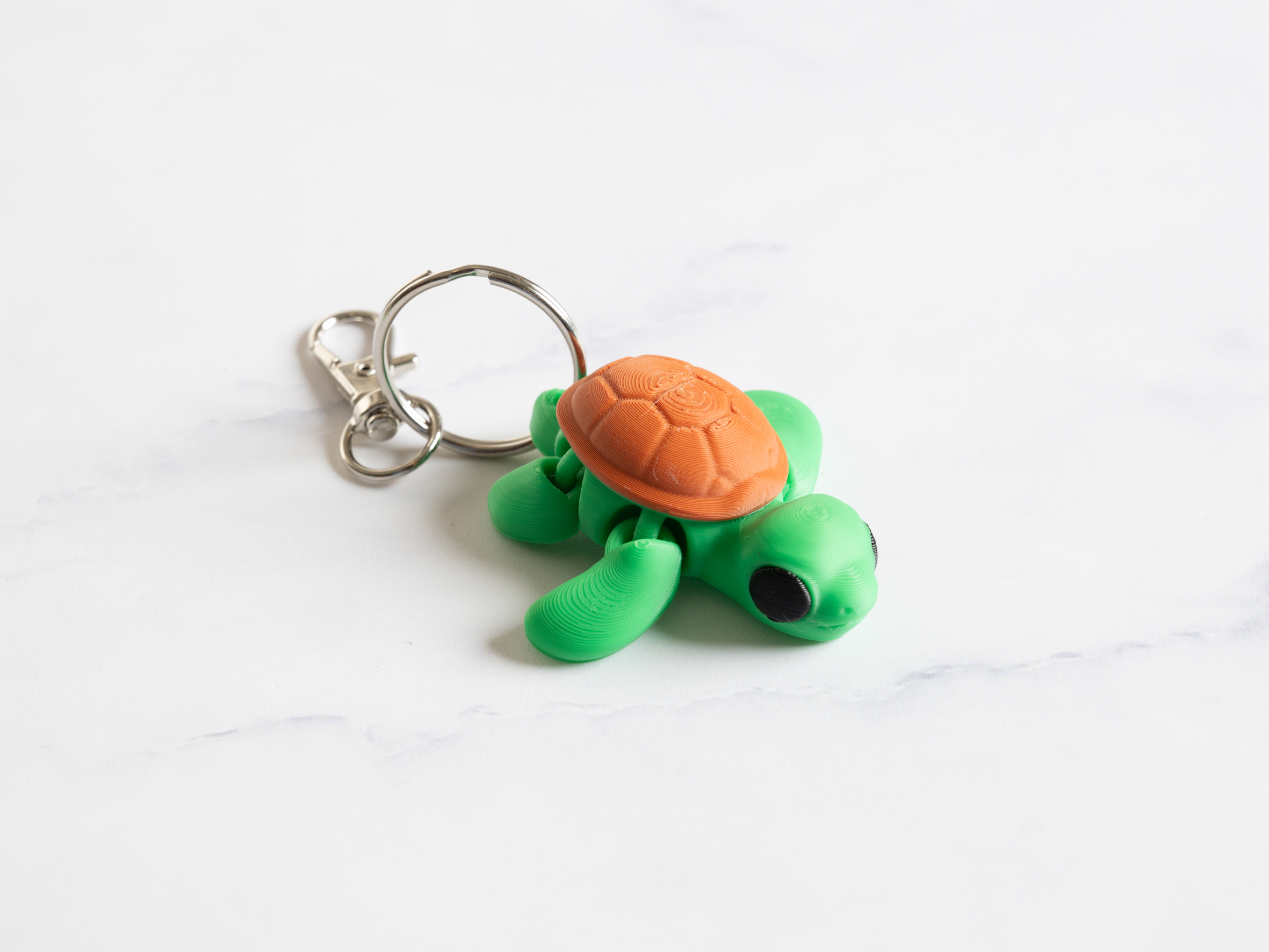 Skildpadden har bevægelige led og er sjove at have med rundt, og denne model har så nøglering, så den kan sidde på tasken, i dine nøgler, eller hvad du nu har lyst til