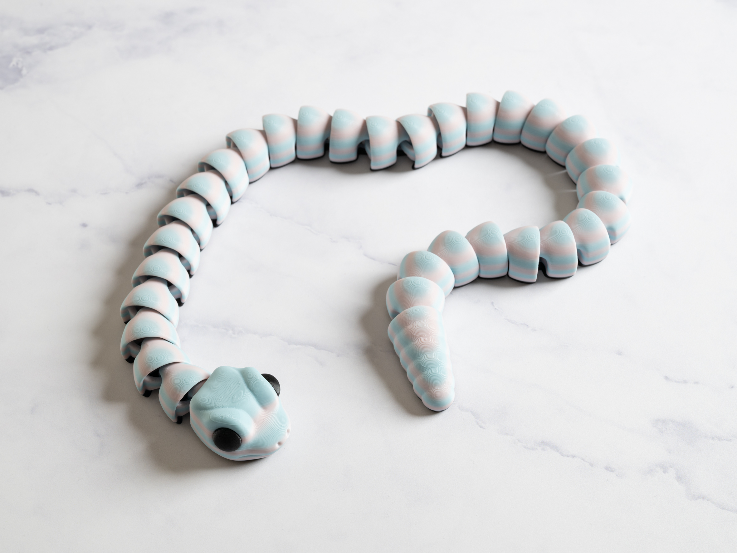 Slangen har bevægelige led og er sjov at posere, lege med og have med på farten, og du vil kunne lave en helt lille samling, da der løbende kommer flere