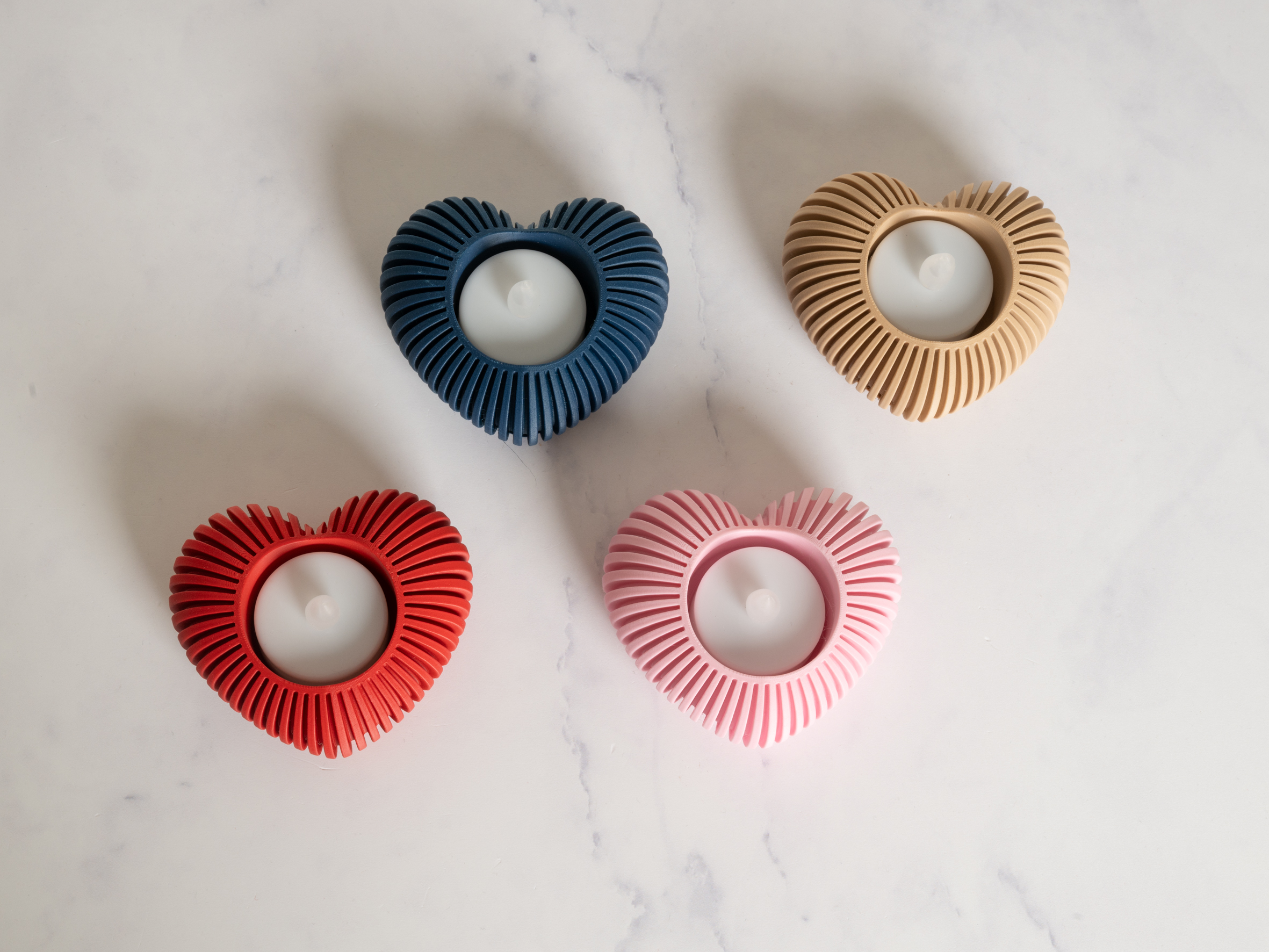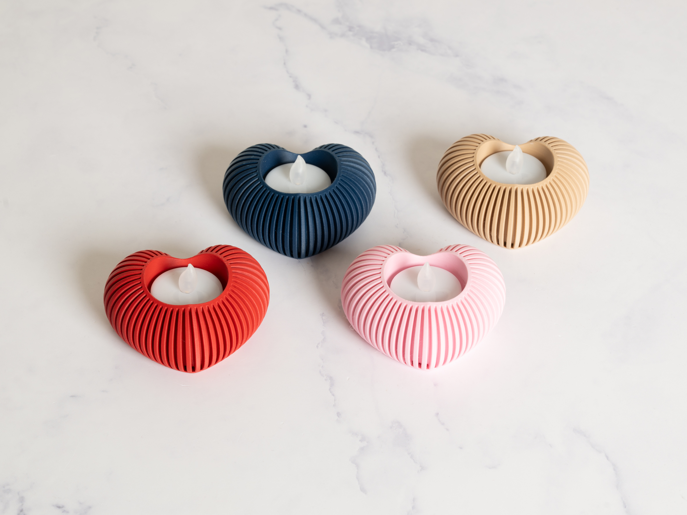 Disse fyrfadsholdere er 3D-printede og kan derfor have små variationer i farve og finish.