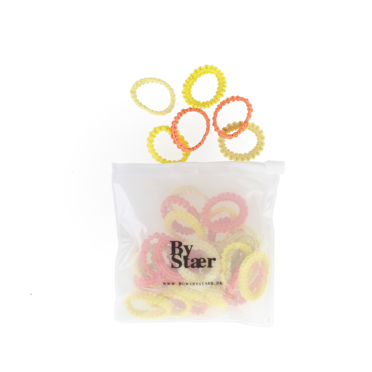 Gode små hår elastikker fra By Stær, i et mix af gule og orange