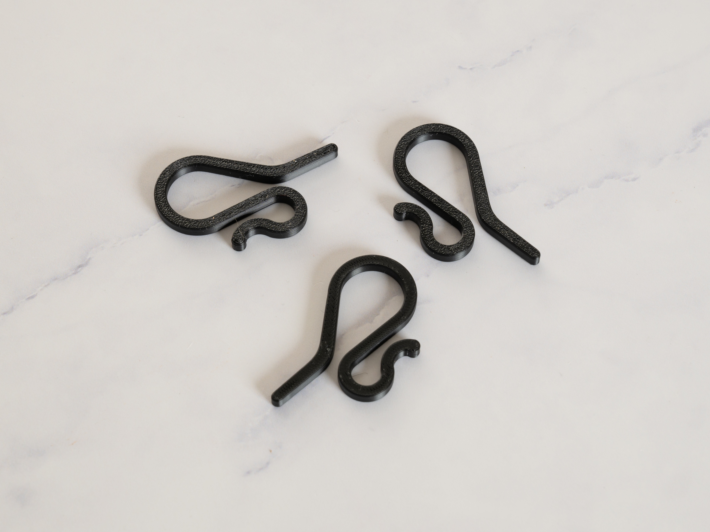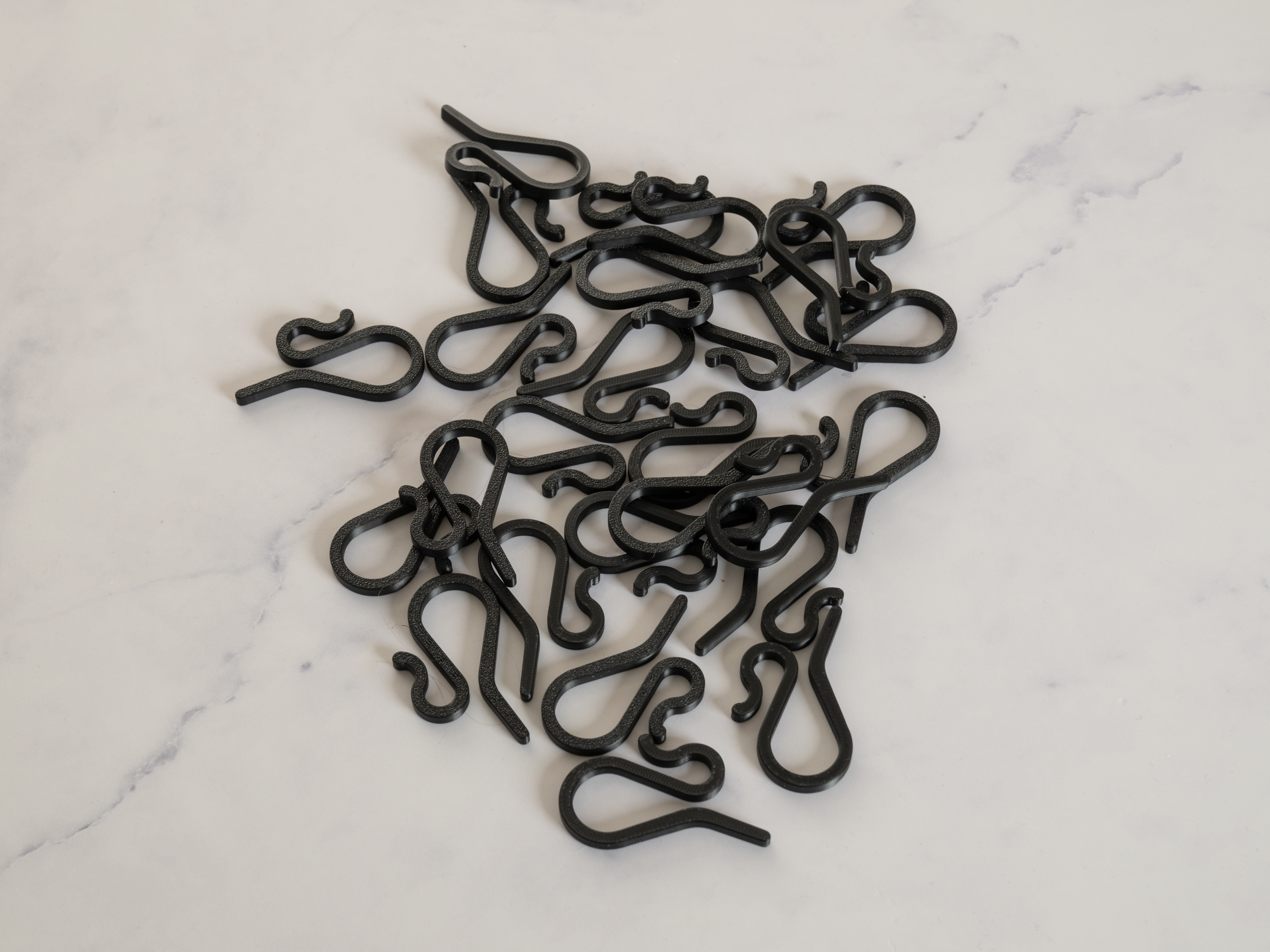 De er printet i PETG så de kan holde til at hænge ude, i frost og sol.